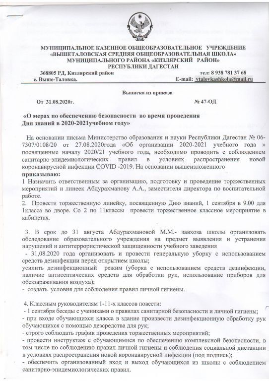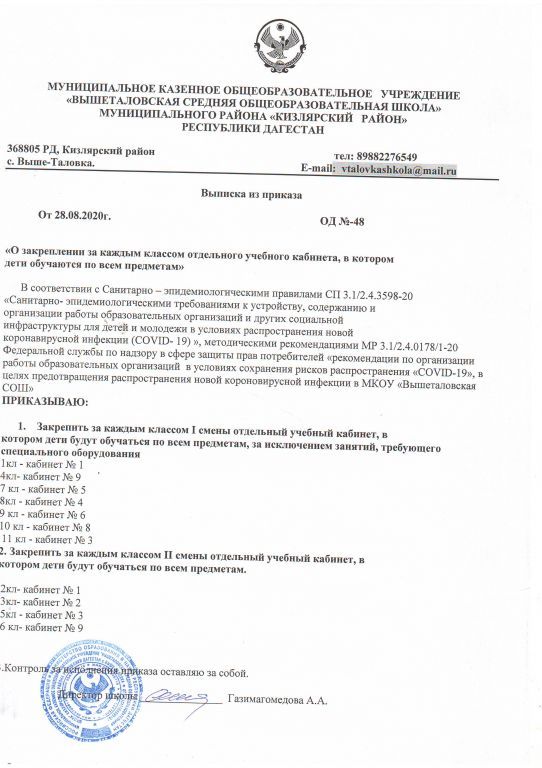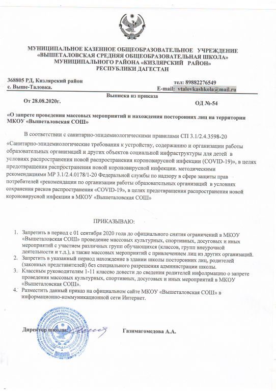 Для получения информации с сайта свяжитесь с Администрацией образовательной организации по телефону 89387813768, почта: mkou_vyshetalovsk@e-dag.ru